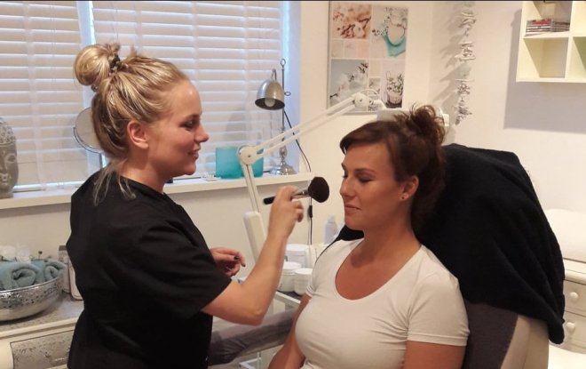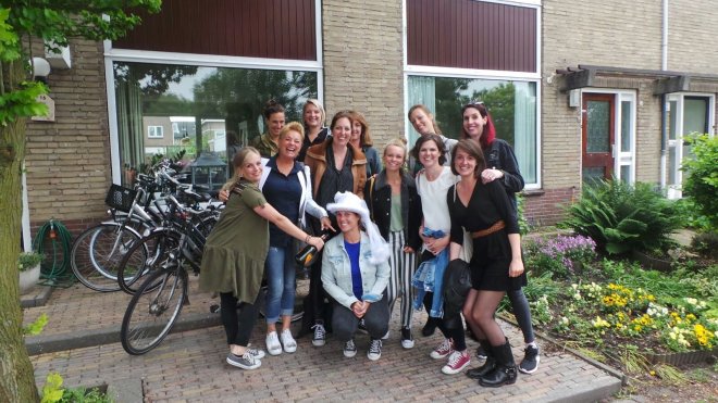 Als ik om 7.30 uur mijn bed uit stap hoor ik al van alles beneden. Ik ga snel douchen en als ik naar beneden loop zit Joyce, mijn vriendinnetje die mijn haar gaat doen, al startklaar. Iets later komt ook Jolijn, mijn andere vriendin die mijn make-up gaat verzorgen, ook binnen. Mijn vader is buiten aan het rommelen, dus samen met mijn moeder erbij is het heel relaxed en ontspannen met z’n 4en. Na een uurtje zitten de krullen in mijn haar en zitten mijn moeder en ik beiden in de make-up. Ook mijn zus komt binnen, en na een dikke knuffel gaan we allemaal aan de slag.