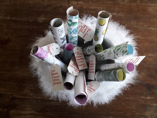 Dit is natuurlijk een uitgelezen kans voor onze ouders en mijn zus om speeches te geven. Ik ben ontroerd door alle lieve woorden en de persoonlijke kado’s die we krijgen. Het is allemaal overweldigend. Dankbaar voor alle lieve mensen om ons heen…